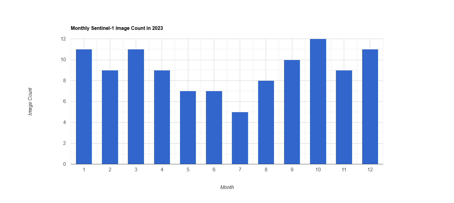 Figure: Monthly Sentinel-1 image count in the study area for 2023.